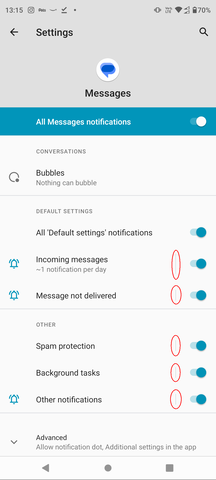 Pedig lehet állítani, képeden a Default settings, incoming masseges részén belül valószínűleg!