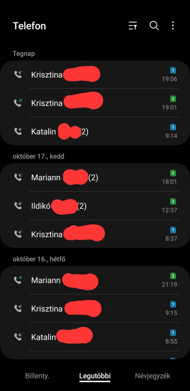 @PaksiPéter mert sokat kell görgetnem ha el akarok jutni pár nappal korábbi híváselőzményekig. A nem fogadott, fogadott és indított hívásokat is külön mutatja, nekem elég lenne az utolsót látni akár fogadott akár ilyenolyan hívás. Tök fölöslegesen látom ugyanazt a gyakran hívott személyel folytatott hívott-fogadott-nem fogadott hívást. -