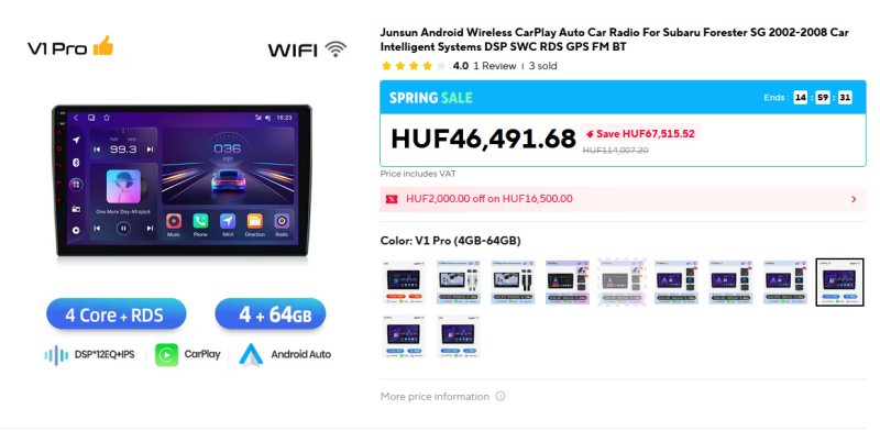 Ennel a Junsun-os listanal az alap modellnel egyaltalan nem irnak AA / Carplay tamogatast: link