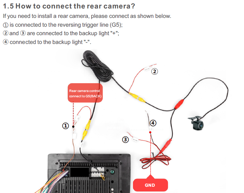 Bekötöd hátul a 12V-os kábelt a tolatólámpa 12V-jára. Csatlakoztatod az RCA kábelt a fejegységhez és megnézed, hogy működik-e a tolatókamera. (átvált-e a fejegység a kamera képre. Ha átvált, csak nem jó a kép, akkor csak a videójel formátumát kell átállítanod)