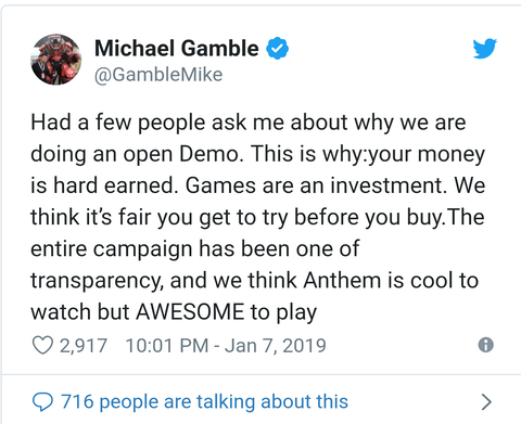 Nekem a Destiny2 csalódás volt, megvettem a csillió forintos motherfucker editiont, és 2 DLC-vel sem voltak képesek olyan játékot összetákolni belőle, ami 20 percnél tovább le bírt volna kötni. Mindenből kevés volt: kevés class, kevés ability, kevés raid, kevés dungeon, kicsi "openworld"-ök. Nagyon hamar repetitív és unalmas lett (single campaign-t hagyjuk is). Az Anthem-nél is a folyamatosan érkező friss tartalom lesz ami eldönti a sikert. Ha lesz miért folyamatosan menni előre és fejlődni, akkor meg fog élni. Ha lesznek mellé jó sztorik is, akkor pláne. Ha félévente lesz egy DLC ami behoz 10 új fegyvert meg 1 dungeont, akkor az Anthem lesz a EA pénzfejő Destiny 2-je. Na az nem lenne jó.