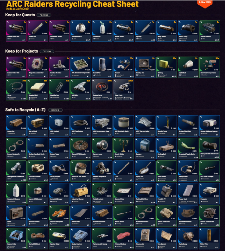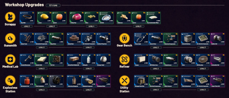 Reszemrol egyszerubb, nem mintha nem lenne haszna igy vizualisan is de a jatekban van erre egyszeru megoldas: MINDEN ami craftolhato/upgradelheto azon az interfacen ahol az upgradet vegzed van a track resources gomb. Amit igy trackelsz azt lootolasnal ha megtalalod megjeloli egy feher szem ikonnal a targy kepenek a jobb felso sarkaban. Igy akkor annyi a dolgom hogy ami fegyvert/craft/upgrade komponenst akarok lootlni azt trackelem es a lista visszanezheto az inventory/logbook reszen. Amikor mar nem akarod trackleni akkor kiikszeled onnan vagy a workbenchnel untrack. Szerintem ez egyszerubb mint mindig bogaraszni egy eleg bonyolult komponens tablazatot. Nekem legalabbis. Ingame meg pikk pakk latom hogy tracked ccucc vagy nem.