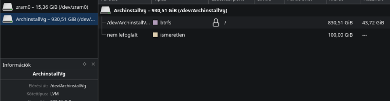 Másik kérdésem. Egy 1 tb-os NVME-n van a rendszer és én ráhagytam a linuxra a telepítést. Ma szembesültem a dologgal, hogy van egy 100gb-os rész, ami nincs használatba, és üres is.