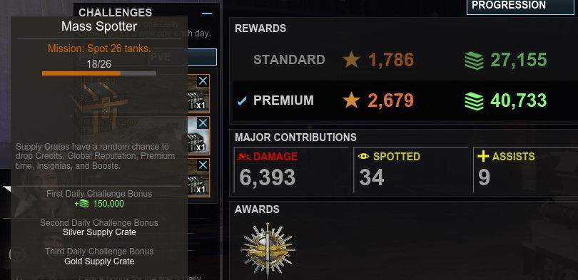 Érdekes, hogy míg PVP - ben bármilyen kiemelkedő eredményt érek el, nem kapok még bronz ládát sem, addig GO - ban csak úgy potyognak a !platinák! és a goldok. Nem tudom tapasztal-e hasonlót valaki. Én speciel örülök neki, mert ma volt benne 1 hét prém illetve minden második ad 1 milla kreditet