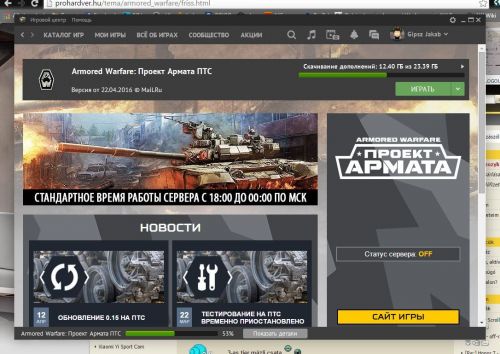 A mail.ru-s gamecenterben kell kiválasztani a PTS letöltést,így: