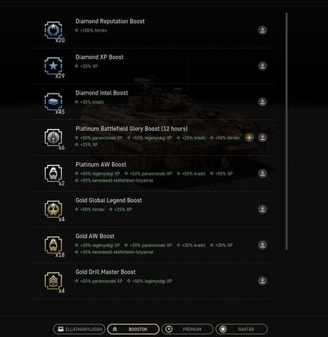 5300 aranyam van,szóval a belépő megvan.Ebből 3000 úgy jött össze,hogy a loot-on eladtam xm1a3 bőrt,mert megint kaptam egyet. Abból az összegből (3.4 euro) vettem 2x T5 -ös m60a3 -as tankot,amit aranyban számolt be,mivel megvan. Nagyon sóherre váltott a csataút,1 darab boost nincs benne.Most írtam a hidraulika miatt,mert 4 tanknál nem működik; Cattb,Altay,K1a1,Amx -10rcr .Szóval nem nehéz sz@rrá lőni őket.