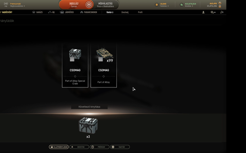 1-napra megkaptam az Altay-t,igaz csak Pve hard meccsekre vittem be,viszont ott nagyon jól szerepelt 15 lejátszott meccs 4 vereség (most néztem vissza) .Tetszett benne,hogy nagyon jó a mobilitása,tűzerő viszont gyenge,gondolom a tárazási lehetőség miatt.Ládákból nekem 2700 gold sikerült eddig,de el is költöttem napi feladatra,de inkább reputációra.Kellett már egy 10-es tank,mert piszkálta a fantáziám K21 XC8 -at húztam ki,arra ment el sok.