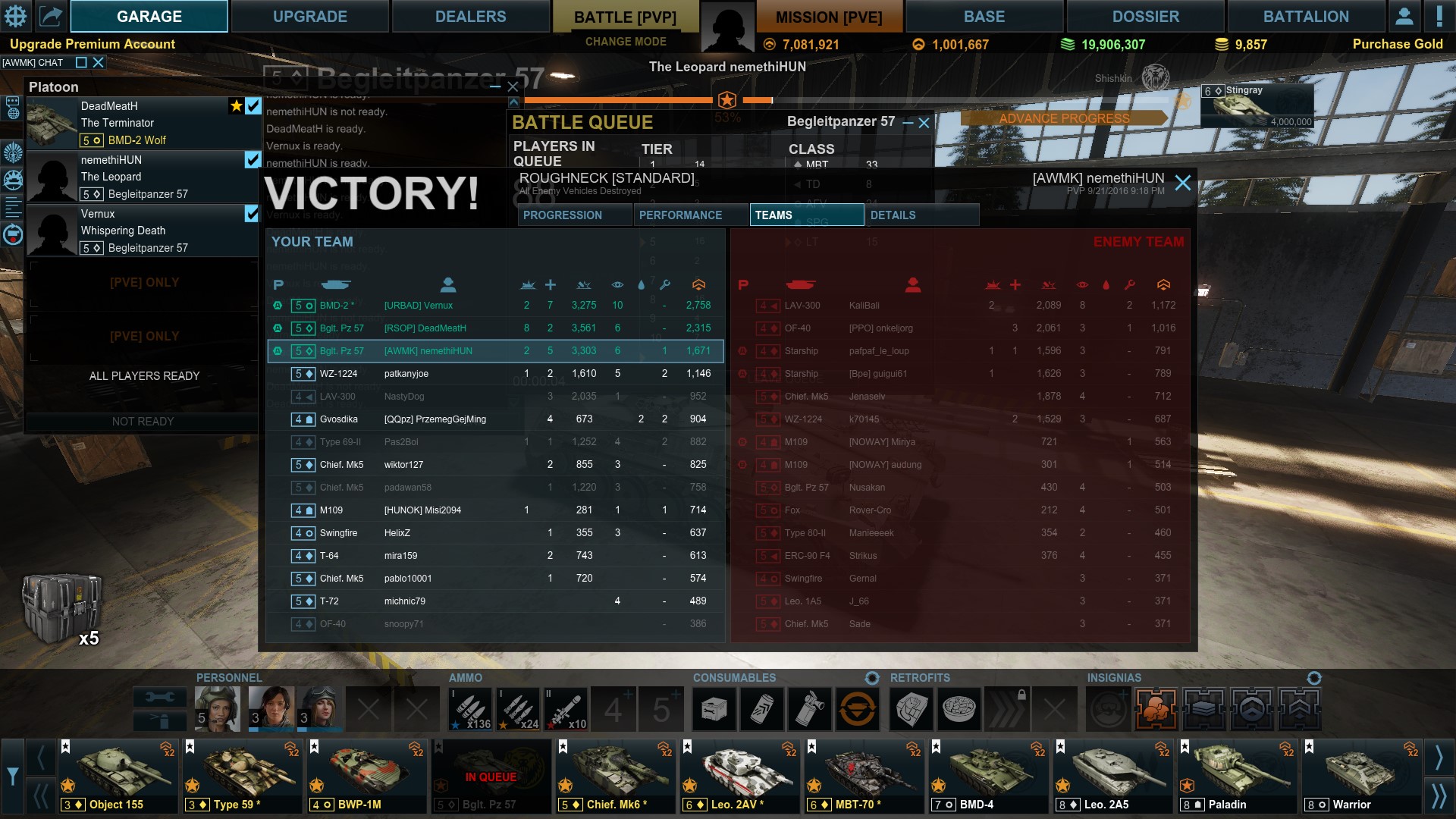 Amúgy nem azért, de jöhetne már valami új ág is, kezdem unni már a mostani tankokat, a kínai ág bevezetése, meg pár lyuk kitöltésén kívül semmi újat nem kaptunk, ami nem premium. Már a TD, Light, Scout ágat is elkezdtem, jó cuccok, de még mindig mbtzni szeretek a legjobban. Az a gáz, hogy nagyon híreket se hallottam/olvastam, hogy közelednének, vagy bármi más. Tervben van ez Lecler, koreai, izraeli, Lengyel ág, de síri csend van. Kicsit növelhetnének a tempón. Jönnek új játékmódok, de tankok is kellenének a vérfrissítéshez. Remélem a játékmódok után egy kicsi erre a témára is ráfeküdnek.
