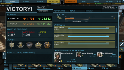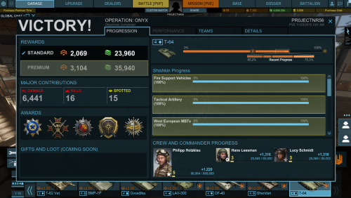 Más dolog: a napokban tértem vissza duplázgatni a tankokat, volt egy kisebb kihagyás most AW fronton, a T-64 meg egészen kellemes kis gép, PvE módban is egészen használható ha jól helyezkedünk és tartjuk a csata ritmusát vele: