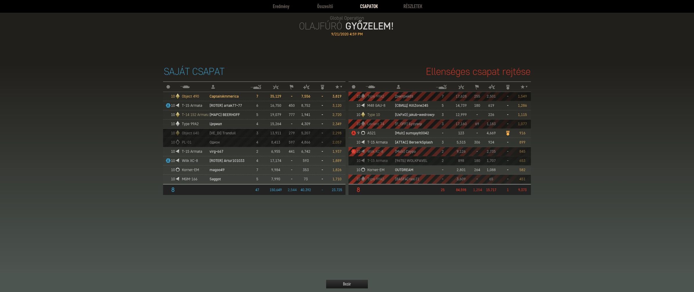 Az új patch óta amiket kipróbáltam járgányok közül az object 490 és a pl lett a legjobb.A type10 -nek a lőszerváltását megnövelték a t15 armata és a kornet már nem tud egyből gyorsan atgm-et lőni és a töltés idő és növelve lett.A sphinx-et előbb fel spotolja egy mbt mint ő azt 632 méteres látótávval ja az is csökkentve lett mert messzebbre látott.A cent. 120 töltés idejét növelték mert túl op volt.Ez egy rossz patch lett vagy sok síró játékos.Egy kis móka a 490-el
