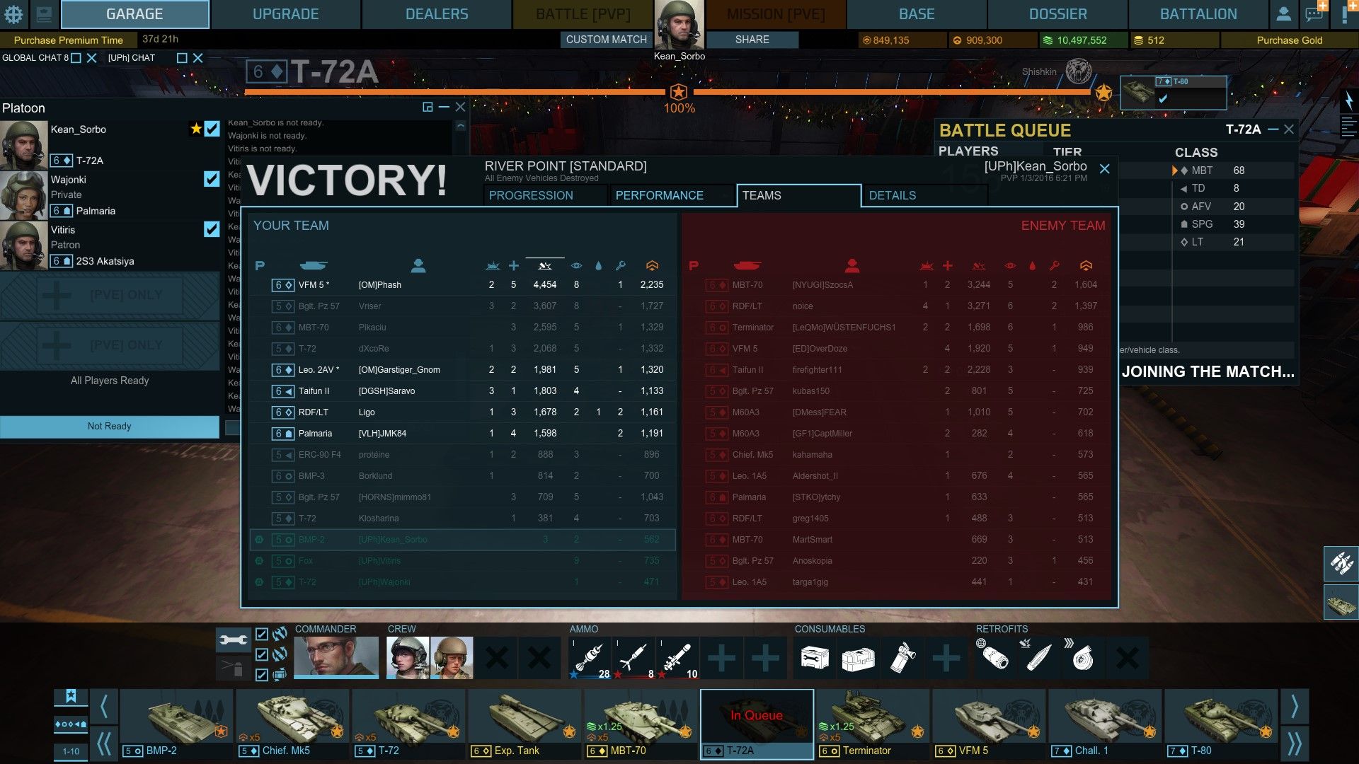 Mi utána Pityuval és Lacival toltunk 9 csatát, én a klasszikus T-72A-val. 9csata/7win. Meglehetett volna 8 is, csak egy bevásárlókocsi két MBT-vel szemtől-szemben akart harcolni a végjátékban.