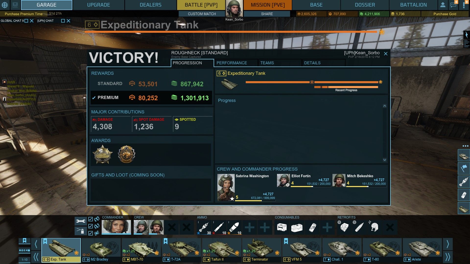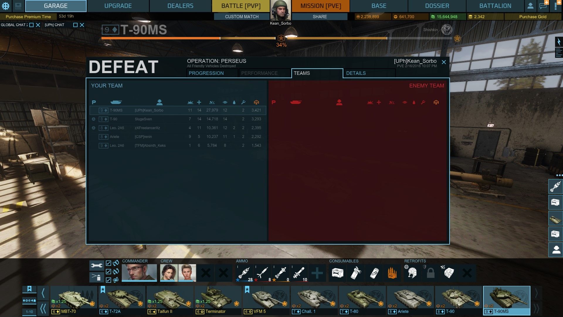 Tegnap nekem is sikerült egy ilyen egybitest kifogni. Mivel merészeltem kilőni előle egy tankot (az ezer közül), úgy belém lőtt 900-at a T-90-es szarjával, hogy a pirosra lőtte a tornyom. Persze a fogyócikk bug most jött elő, így javító és minden más fogyóeszköz nélkül mentem. Bosszúból fogtam, aztán befoglaltam.