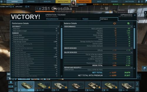 Én is így vagyok vele. Kb. 10 milla kellene, 3 T5 és vagy 6 T4-es jármű vár kifejlesztve a megvásárlásra. Tegnap este futottam két kört az Obj. 155-tel, szerencsére nyertük mindkettőt nettó 90k bevétellel (nem nagy eredménnyel, 1800 körüli sebzés, 1-2 kill) így azért jobban gyűlik.