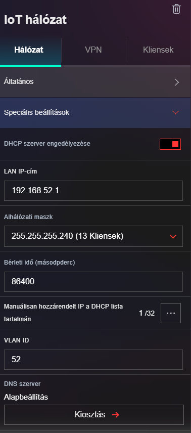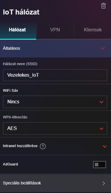 Ennél úgy működik, hogy az iot háló létrehozásakor, ha kikapcsolom a wifit, akkor hozza csak létre pl. a VLAN 52 részt és lesz külön IP rész. Ikon szerint is LAN hálózat. [kép]