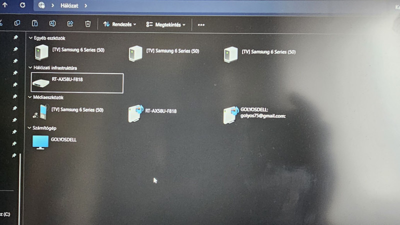 A fájlkezelőben ahol hibát dobott hálózati hely csatlakoztatásakor, ott a \\192.168.50.1-et használd. A névfeloldással van gond, ezért a képen látható módon, a router nevével nem sikerül a kapcsolat. -