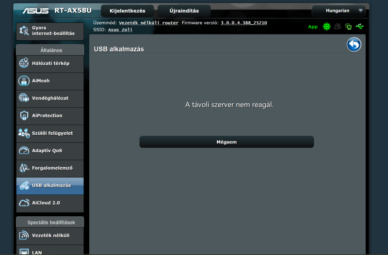 A leírásod alapján próbáltam csatlakoztatni az AiMesh hálózathoz az AC68-s routert, de sajnos sem Wifi-n, sem LAN-n keresztül nem veszi fel. Megtalálja, mennek a százalékok és kb. 2 perc után az alábbi hibaüzenetet írja ki.