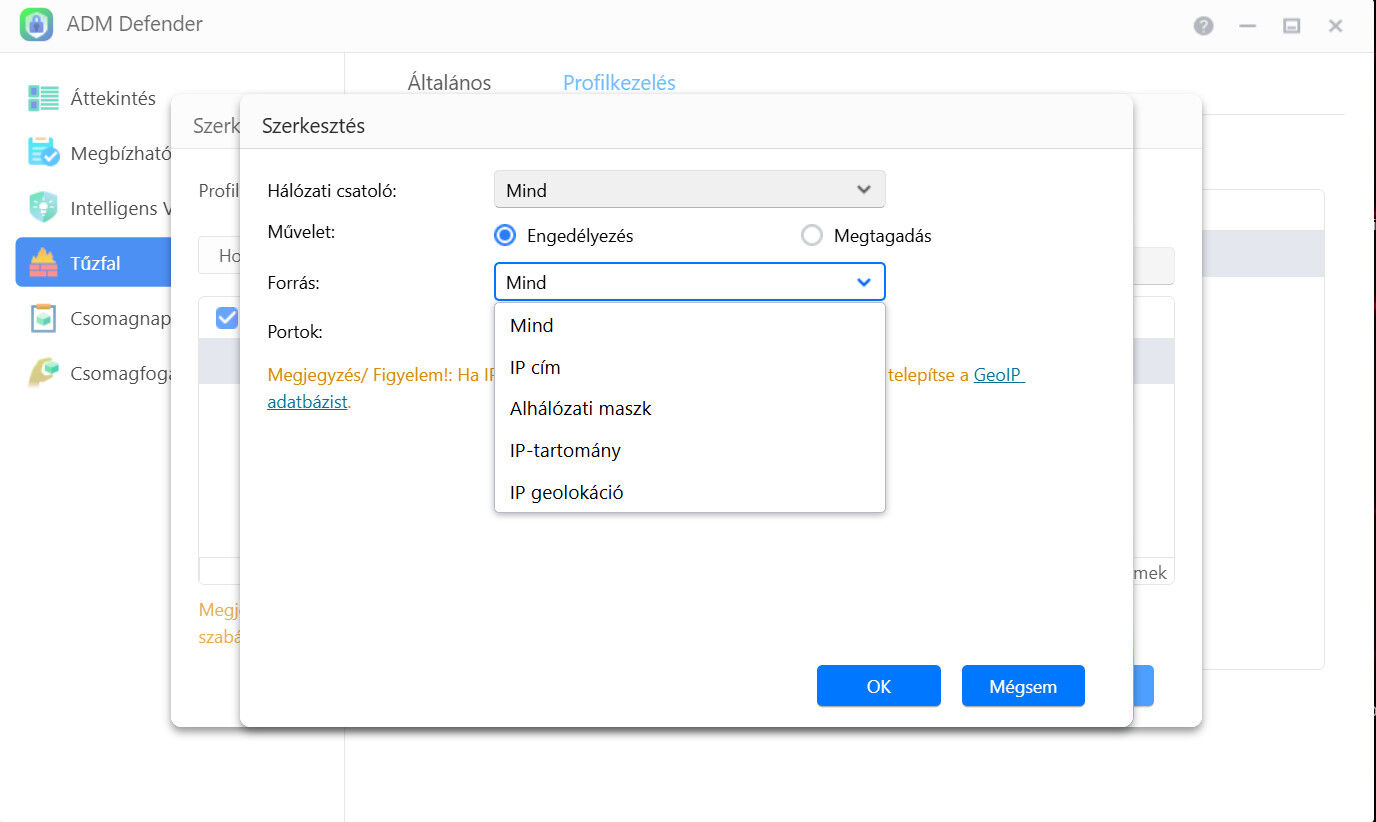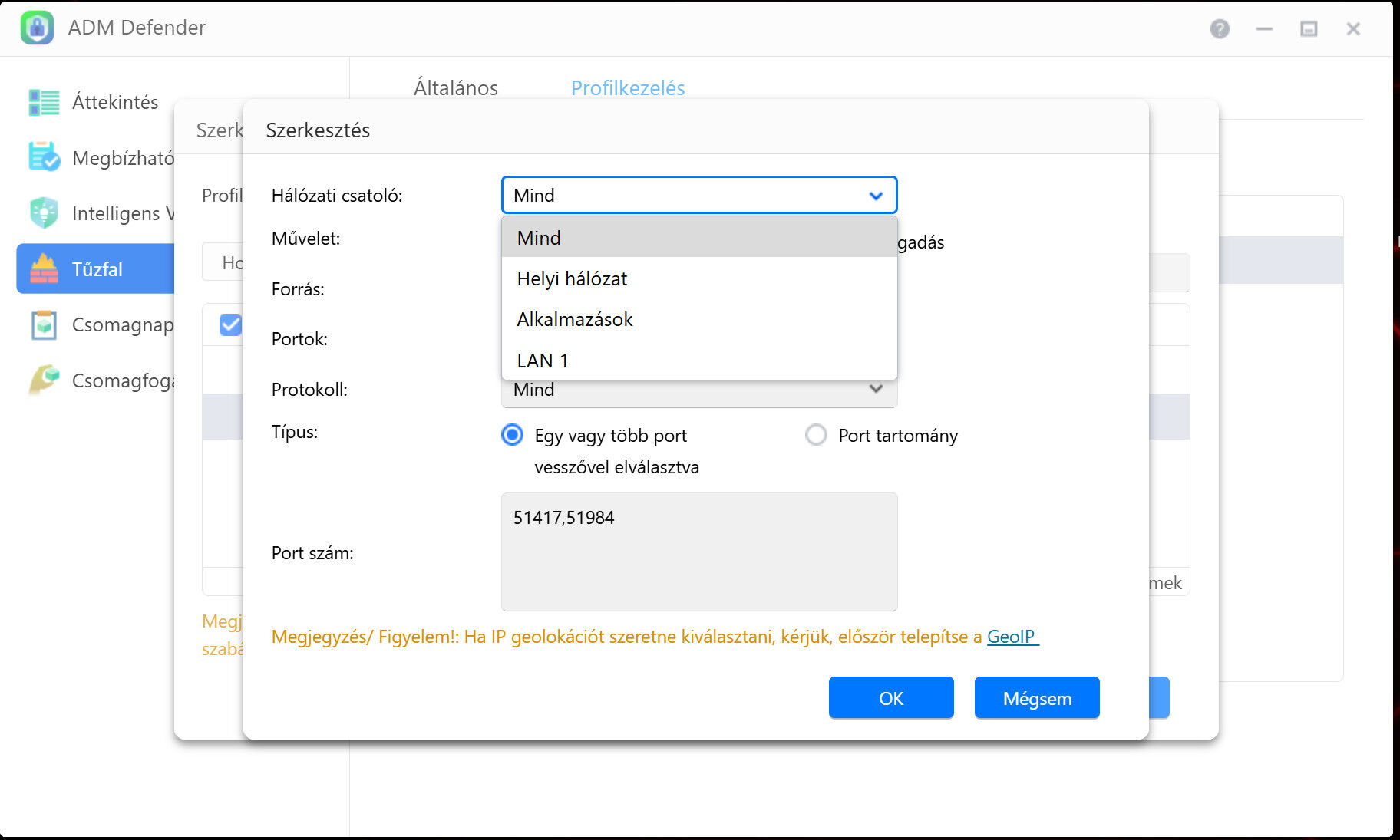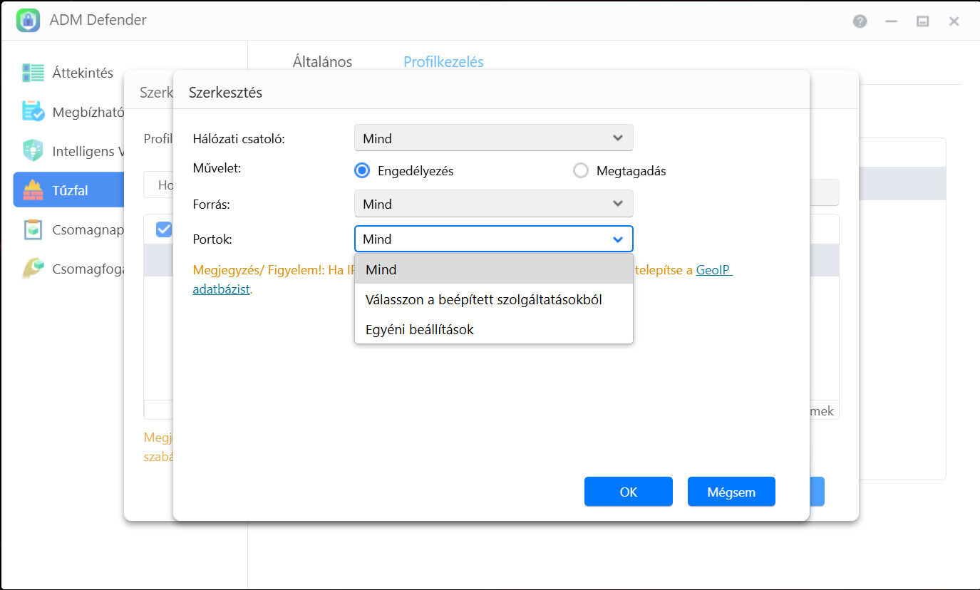 Szia! Idáig is a routerben át voltak irányítva a Download Center és a qbittorrent portjai, de valószínű a NAS tűzfal nem engedte ki. Most a NAS tűzfalban így módosítottam: [kép]