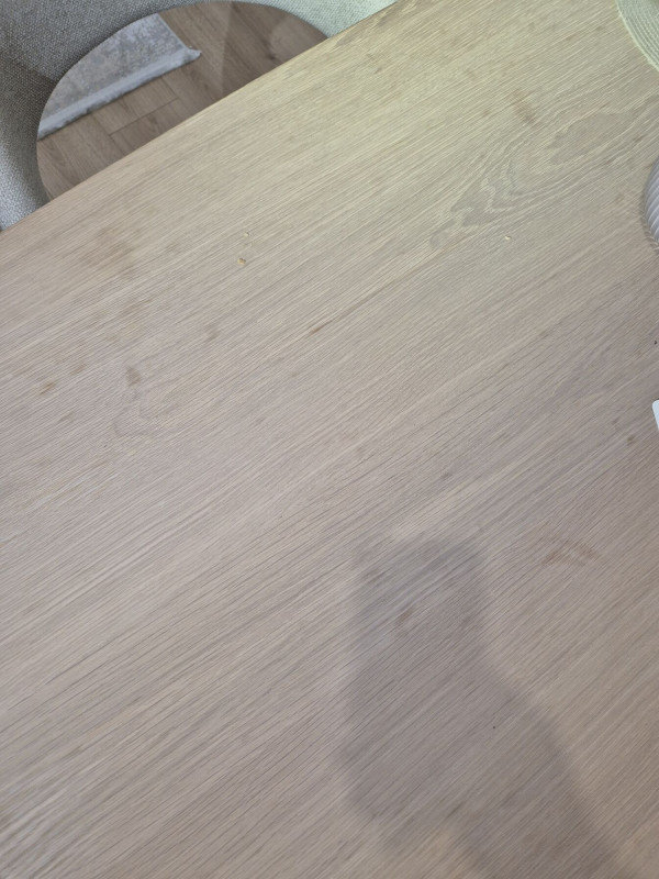 Az utolsó képen jól látszik, hogy mennyire könnyen gyűjti a koszt, zsírt és a nedvességet rögtön magába szívja. 2 hónapos asztal!