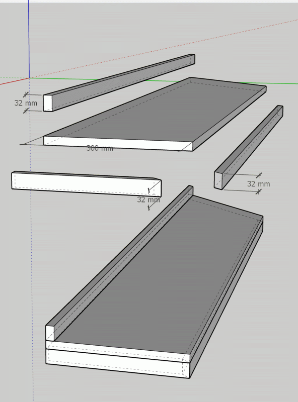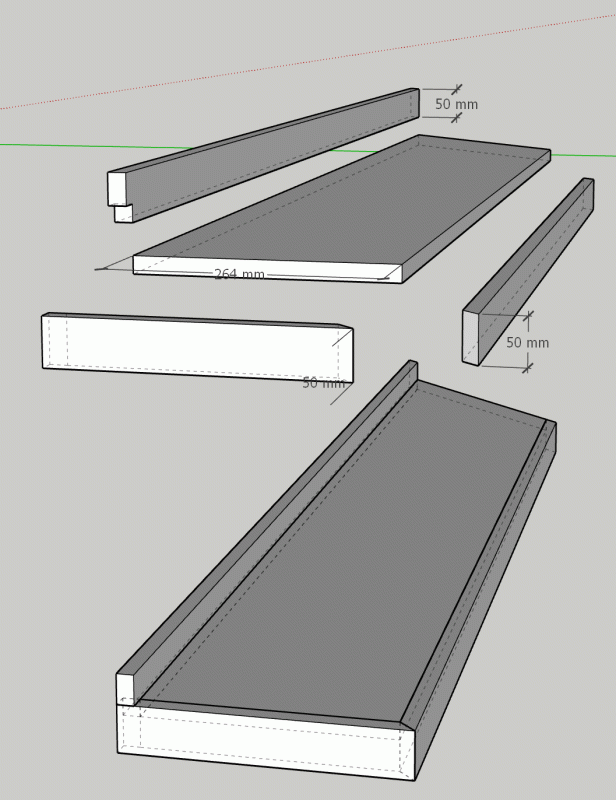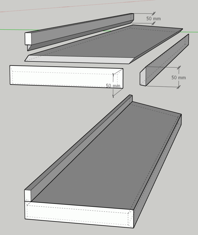 18 mm vastag a vízszintes lap és a fal felőli, a vízszinteset élzárni és körben befalcolni, majd egy 4 mm-es bútorhátfal anyagból körbe szegni, a sarkokban gérbe vágva. De adom a tiszta fából ötletet is, azzal szépen meg lehet csinálni, az összes illesztést el lehet dolgozni, akár gérbe vágod, akár stumfra, akár falcolod. 18-20 mm anyag vízszintesen és hátra, szoklinak meg 5 mm svartni, összeragaszt, a hátfalat csavarozod is, éleket csiszolóvászonnal elveszed, lekened valami olajjal, vagy lakkal, a vízszintes lap alatt a hátlapot meg felcsavarozod és semmi nem látszik.