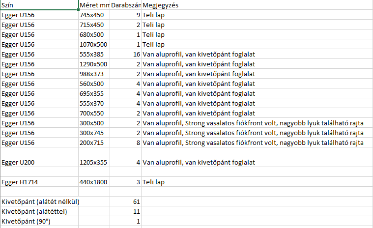 Volt egy "kisebb" felújítás, amiből maradtak faanyagok. EGGER színkódok megvannak. Esetleg itt van, akinek jól jöhet faanyag egy kis hobbibarkácsoláshoz? Sajnálnám kidobni.