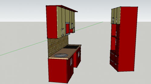 Az ablak alatt van egy radiátor, ezért nem U alakban van összekötve. Annyi hiba van a rajzon, hogy a sütő nem a falnál, hanem kijjebb lesz, mert ott futnak a radiátor csövek.