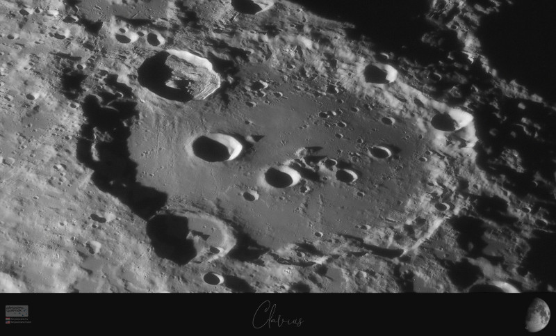 A fényképre kattintva közel 150 megapixeles holdfotót találtok (helyesebben az ide feltölthető kis változatát), amit 31 darab, 3200mm fókuszon készült, egyenként 8.3 megapixeles kocka ad ki. Az eredeti képet sajnos csak az oldalamon lehet csak megnézni a méretkorlát miatt. A fotó több, mint egy órán át készült, ezért a közben változó légköri nyugodtság (átlagosan jó, 4-es seeing volt) részletkülönbségei értelemszerűen felfedezhetőek. Ezeket teljesen semlegesíteni nem lehet, de az alapos utómunka alatt igyekeztem az ebből fakadó felbontás különbséget minél kevésbé érzékelhetővé tenni, a kép barangolós hangulatát pedig ez nem zavarja meg, ha elfogadjuk, mint szükségszerű adottság. A kép a 300-as Newtonnal készült, mert az ANT épp ráncfelvarráson van. :)