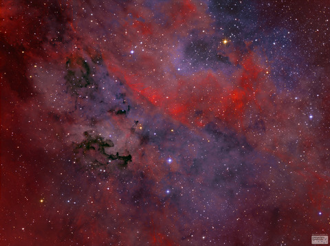 Elkészült egy új kép a Sharpless 2-108-ban kavargó P91 sötét ködről. Nagy méretben itt: -