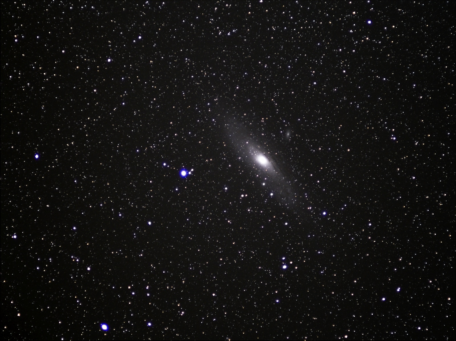 Itt az első asztofotó probálkozásom. 4 vagy 5 iso 800-as 2 perces expo 45/1.8-as obival, 2.2-es rekeszen. DSS-el. 4 darkot is használtam. (EQ5-ös 1 tengelyes vezérléssel):