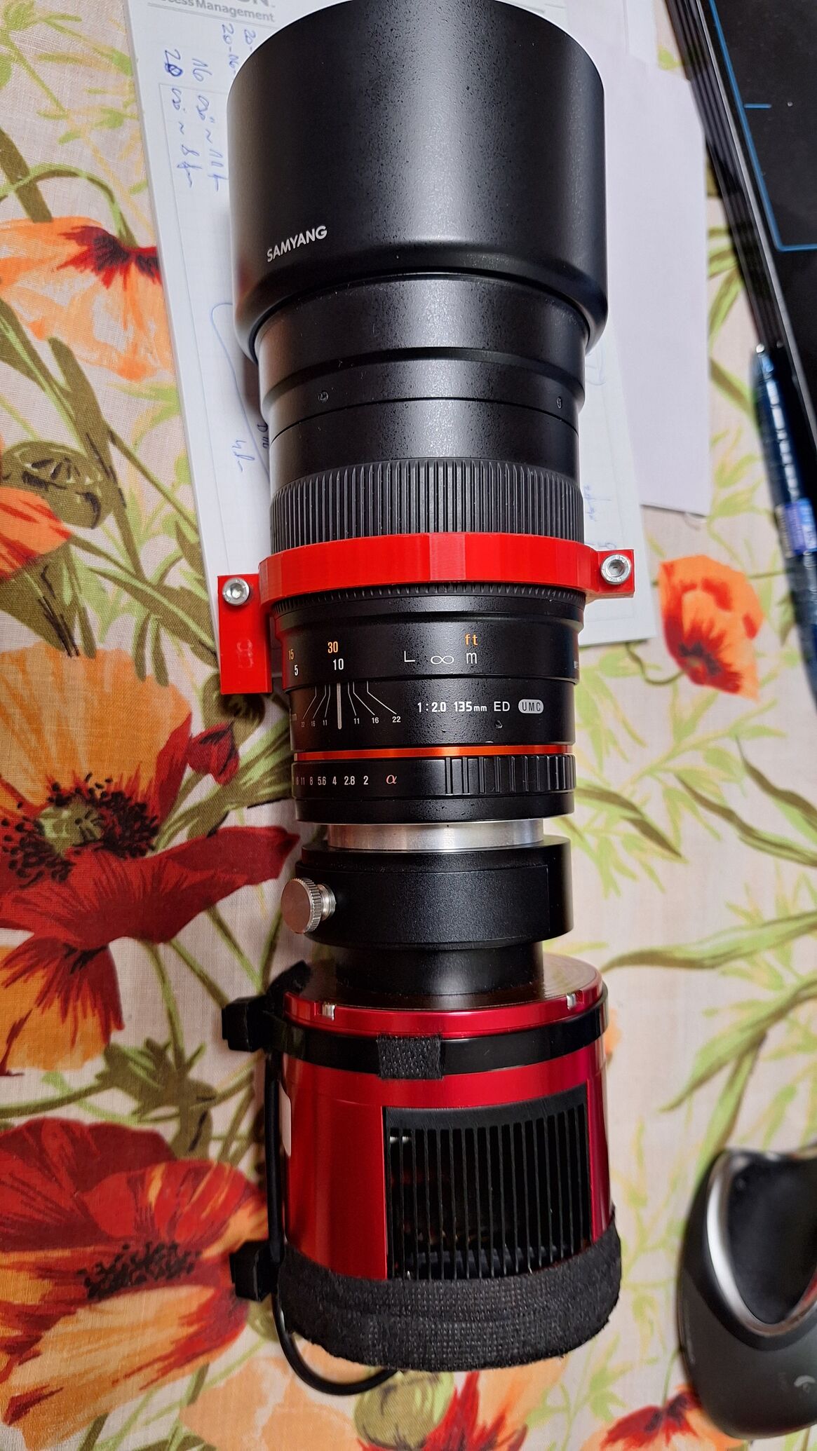 [.mf] Samyang bajonet 3 csavarral leszedhető, [kép] esztergáltattam ide egy adaptert M48 menettel, szűrő fiók, kamera.Kicsit számolgatni kellett, hogy az eredeti, A bajonetes szenzor távolságra kerüljön az asztro kamera, de kiadja. Az E bajonetes obival már nem jön ki a méret, mert hosszú az objektív ház. Canon v. Sony A kiadja