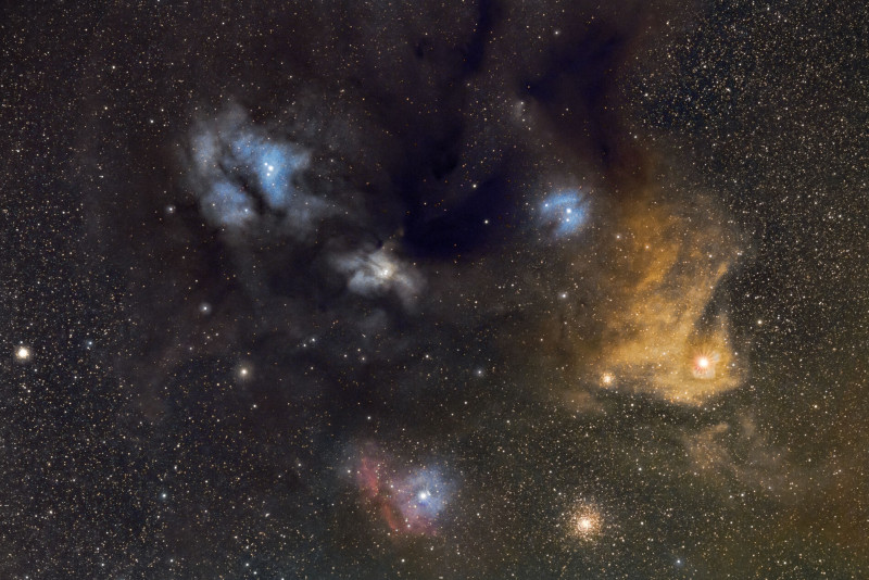 Óvatos duhajként megosztom felétek a legutóbbi képemet az Antares és környékéről. Kép egy saját átalakítású Samyang 135F2 obival és Asi183Mc-Pro kamerával készült, 126 db 60sec képből (10+ képet a repülők tettek tönkre