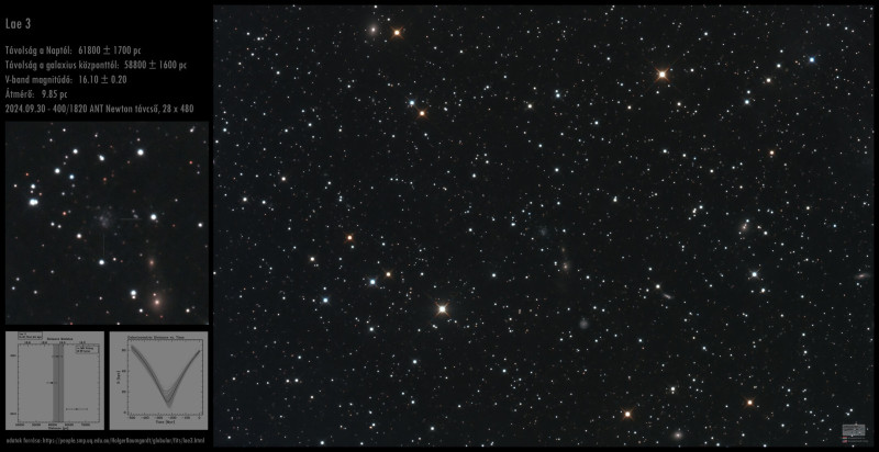 Ez tagadhatatlan nem egy klasszikus szép színes asztrofotó, inkább érdekes digitális észlelés. A képen egy hihetetlen távoli gömbhalmaz van, a Tejút külső halojában. A témát nem én választottam ki célpontul, Kernya János barátom (namíbiai kétszeres expedíciós társam) keresett meg, hogy a készülő könyvébe tudnék -e kattintani a 2015-ben felfedezett Laevens 3-ra. Mivel szinte még egyáltalán nem készült róla fotó (a felfedezést követő profi obszervatóriumi képeket leszámítva), nem voltunk benne biztosak, hogy ez az ANT-tal lehetséges -e megörökíteni. A kép közepén találjátok. Bővebben: https://fenyeslorand.hu/laevens3/ -