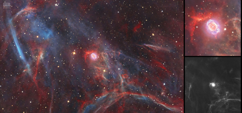 Én is hoztam valamit. Tudom hogy most az üstökös mindent visz és kicsit elkopik a többi képre majd az érdeklődés, dehát most lettem kész. Őszintén mondom, ez életem legnehezebb képe volt. 36 órán át exponáltam és szeptember eleje óta próbálom feldolgozni. Szerintem nem véletlen, hogy nem fotózzák ezt az objektumot még nemzetközi szinten sem (csak nagylátóban találtam minőségi képeket). Nagyon nagy a dinamika különbség a két objektum között (beraktam monoban) és úgy feldolgozni, hogy ne legyen túltolt, de mégis minden látszódjon, nagyon nehéz. Én ezt az utat választottam, nem görbéztem túl a hátteret és csillagcsökkentést egyáltalán nem alkalmaztam (bár kísértés volt, hogy jobban látszódjon a háttér): végül ez egy mérsékeltebb feldolgozás, de ebben volt békességem. A színeknél pedig nem mentem el vadregényes irányokba, az RGB-t is felhasználtam, ezért az SNR pedig nem lángoló színű, mint a Fátyol, hanem lágyabb, amilyen egyébként is - VNP köszi, hogy segítettél a színekben egy kontra ránézéssel, nem szoktam -e túl hozzá a feldolgozás során. A témáról az oldalamon bővebben: https://fenyeslorand.hu/ngc40_cta1/