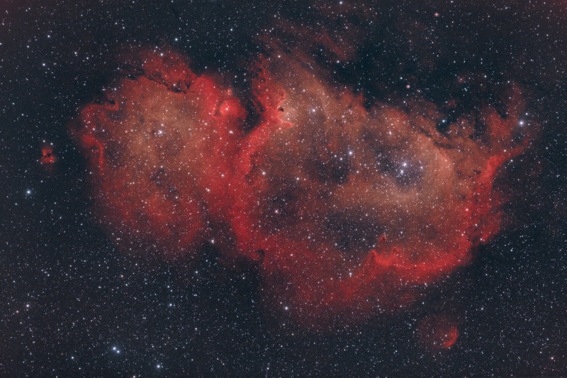 300 mm, F4.5, crop1.5, 116*10s, ISO8000, a Stack PS-ben egyesével, mert az elmosódott, zajos képeket nem ette meg egyik stacker sem. Javitásként még PS stack előtt mindegyik képet AI Denoise-oltam Lightroom-ban, majd PS stack és Stretch, végül újra LR szinezés.