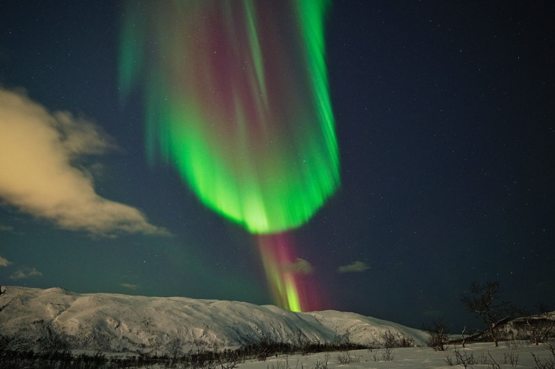 Ilyen aktivitást havi 1-2x látunk, pedig szinte minden éjszaka kint vagyunk, lehetőleg felhőmentes helyen. Ezek most konkrétan bevilágították a tájat, olyan erősek voltak. Normál esetben valóban csak szürke derengésnek indul (mivel a szemünk sötétben alig érzékel színeket), egy fényes felhőszerű képződmény, ami mögött viszont látszanak a csillagok (innen tudni, hogy nem felhő), aztán utána összeállhat teljes égboltot átszelő ívvé vagy ívekké, olyankor már erősebb. -