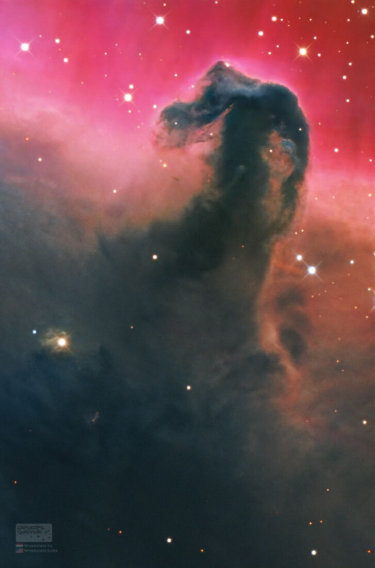 Én nem így látom. Ha nagylátó képet akarunk a lófejről, arról van 10 000 kiváló, éppen én is csinálhatonék egy újabbat. Az a régió rendkívül sűrű, van minden, mint a búcsúban. De engem a Lófej érdekelt most, önmagában. Ott viszont ez a valóság, a túlkontrasztozott képek nem adják ennek a lenyűgöző sötét porfelhő valódi részleteit. Itt az volt a cél, amit sikerült is elérni.