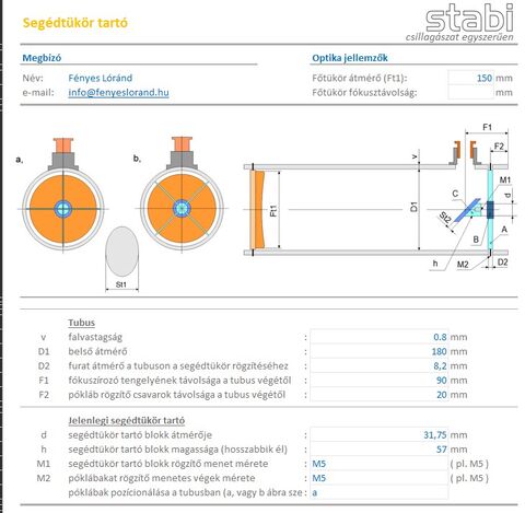 Lóránd, köszi a Stabis tippet! Voltam náluk, felvettem a rendelésem, egy 150-es segéd és főtükör tató, és egy 200-as segéd és főtükörtartó szetet. nagyon jó minőségű cuccok, és minden megvolt a megbeszélt időben. Mostmár csak az optikai elemeket kellene megvenni.