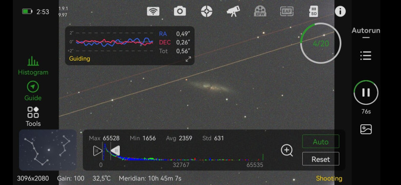 asi airt használok, de phd2-t használtam régen, a vezetés minösége a polusra állás pontosságátol függ. függetlenül attol, hogy mivel/ milyen szoftverrel/ vezetsz.