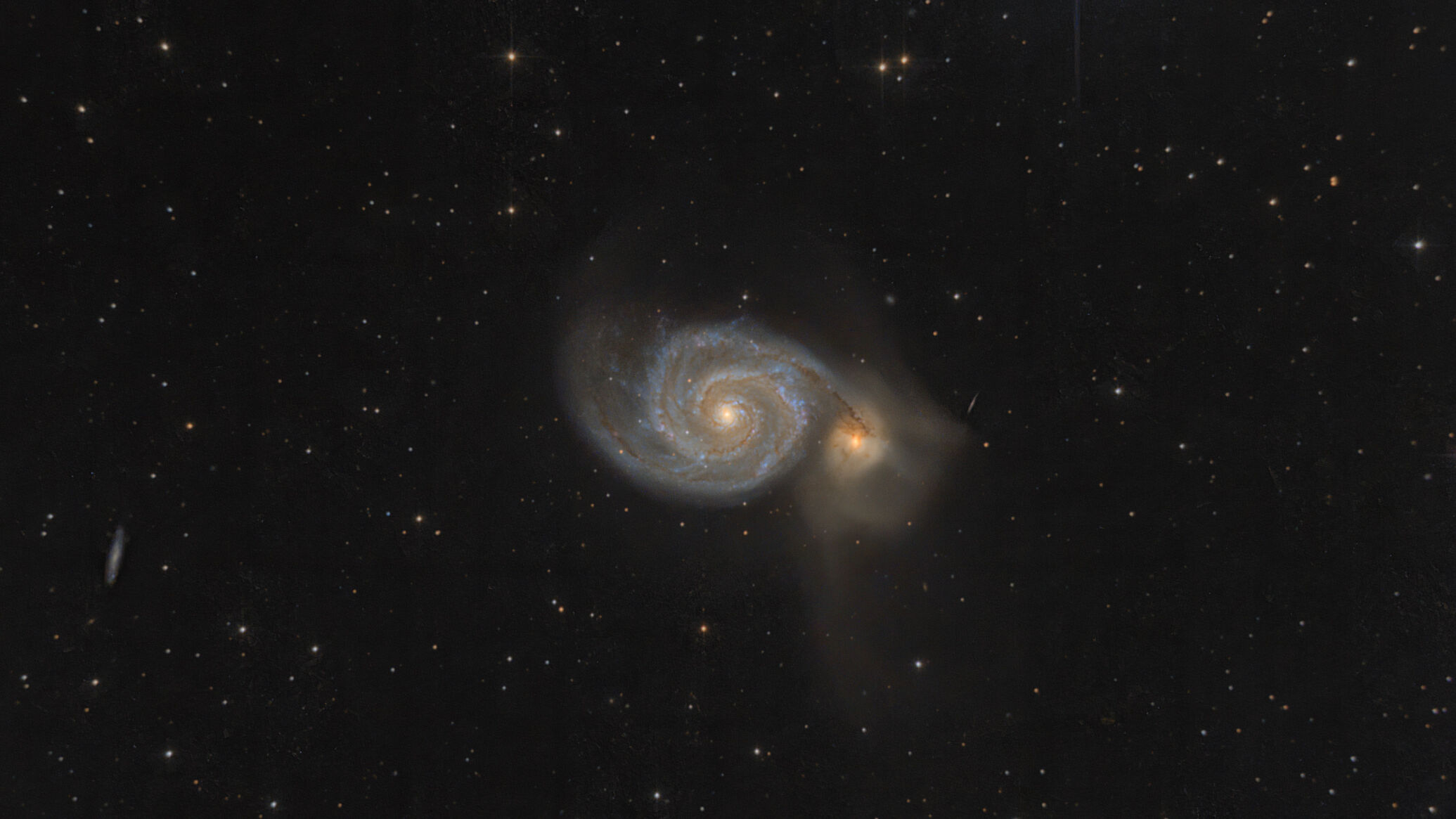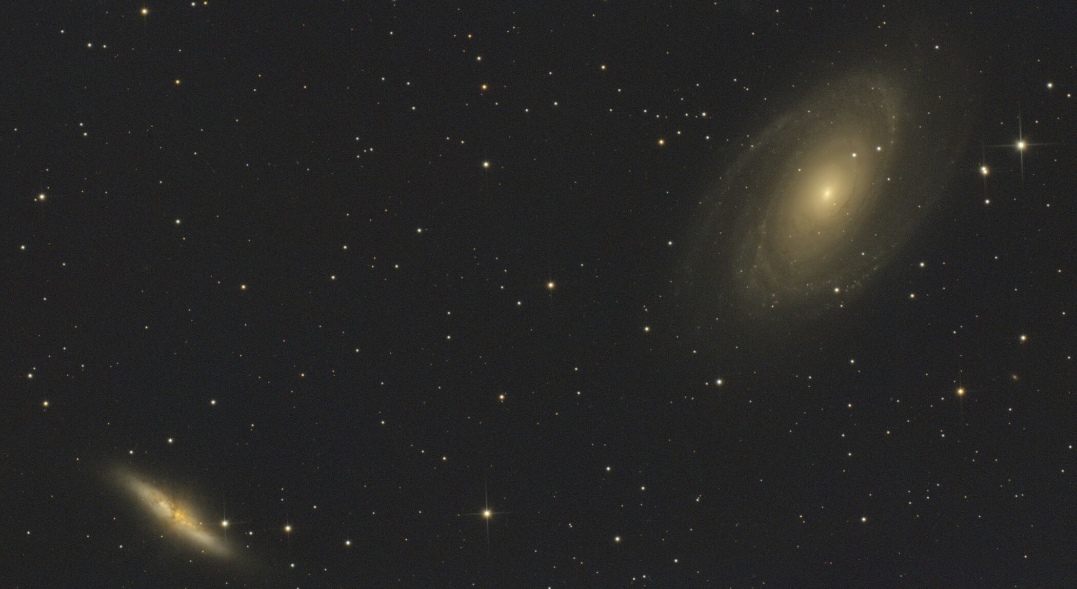 Az M51 még márciusban készült ugyanezzel a felszereléssel, de kómakorrektor nélkül. Az M81 tegnap este. A színei sem jók, hiába kalbirálom, talán a telihold miatt, de az a CA-szerűség ott van.