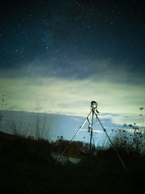 Ez meg a tegnapi setup, még a 35 mm obival, telefonon 30s, ISO1200, RAW és Android Lightroom a hidegben a gép mellett.