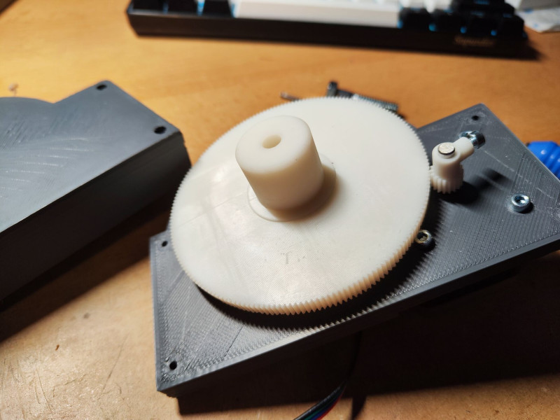 A mechanika kész, az elektronikát hajnalban forrasztottam talán készre, most írom a programot hozzá, hogy wifin tudjam vezérelni telefonról. A motor amúgy már tud forogni, barbár módon fix fordulattal akár neki is vághatnék a bulinak, kézi visszatekeréssel, külső intervalométerrel. -