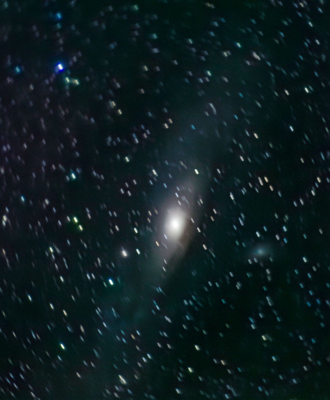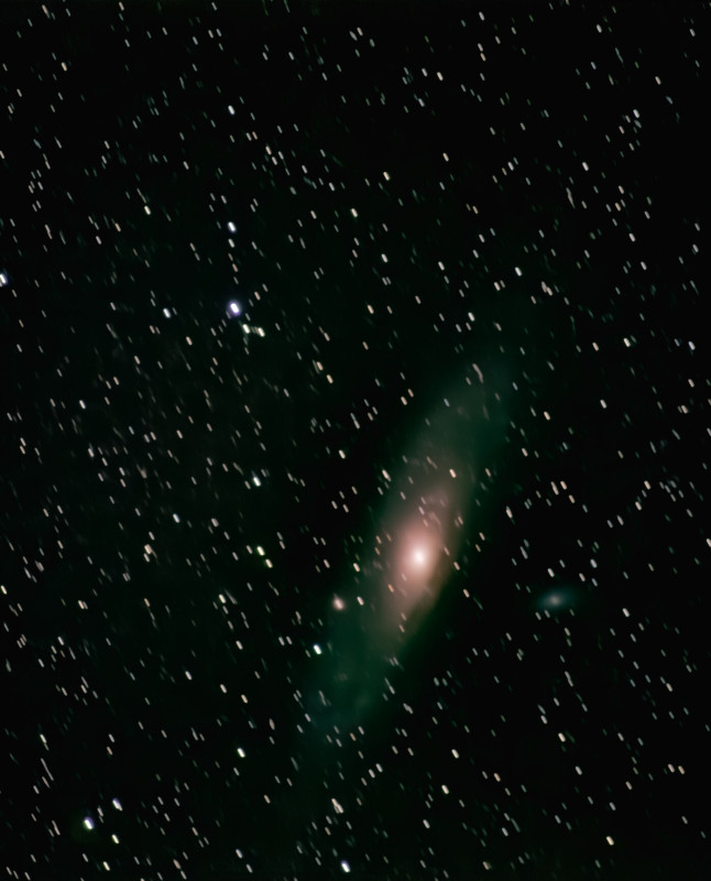 Negyed óra expom volt az Andromeda-ról, 3200 ISO mellett, 220 mm környéki gyújtótávon, F3.6 és 4.5 között valahol egy öreg Minolta obival. Az eredmény nem tetszik.