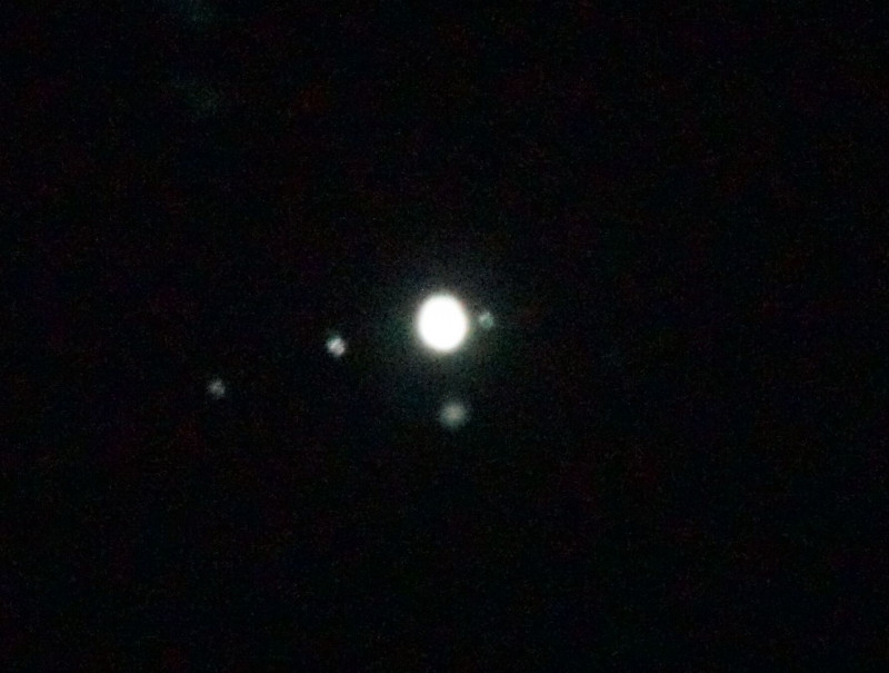 Sikerült elkapni (szintén csak a nappaliból fotózva remegő állványon) a Jupitert és holdjait.