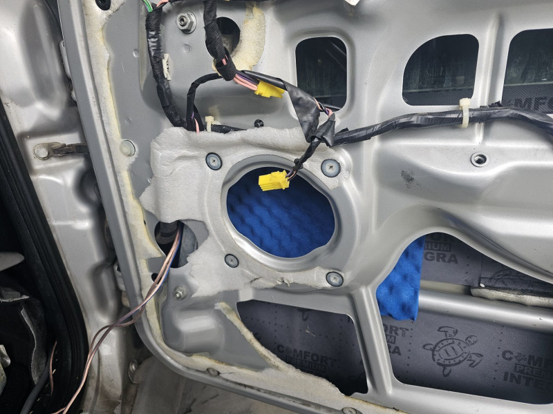 Elég nagy műtét teljesen szétszedni az ajtót, rengeteg csatlakozó, klipsz van benne, mennyire botorság, csak a “dísz” burkolatot levenni és hangszóró csere közben csak a nyomó mögött szigetelni, illetve mivel érdemes?