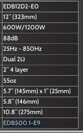 Hangszóró RMS: 500W, erősítő: RMS @ 4 Ohms: 1 x 170 watts.