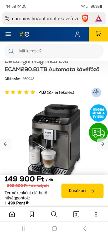 Sziasztok! Felújított, jó állapotú használt automata kávégépet szeretnék vásárolni, kb. 100000 Ft-ot szánnék rá, cappucinot is szeretnék készíteni vele, valamint a kávé hőmérséklete is fontos lenne számomra. Tudnátok ajánlani konkrét típusokat? Napi 2-3 kávé lenne főzve vele. Előre is nagyon szépen köszönöm a segítséget