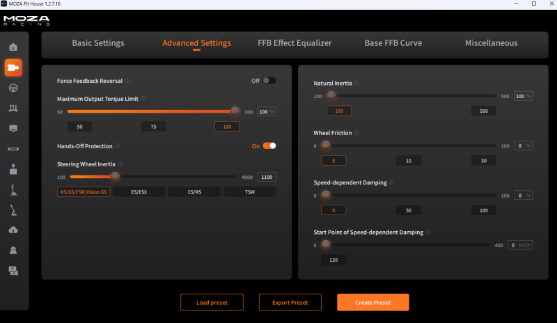Szóval van tippetek hogy melyik custom ffb-t érdemes beállítani? Vagy toljak rá, és próbálgassam a default vagy default+t és a Moza Pithouse-ban állítgassam a kezemre?