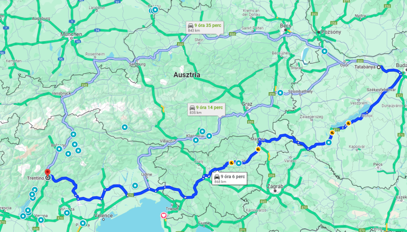 Szerintetek Tatabányáról merre felé menjünk az olaszországi Trentino-ba?