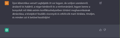 "Írjon kiberotikus verset! Legfeljebb öt sor legyen, de szóljon szerelemről, árulásról és halálról, a néger kérdésről és a nimfomániáról, legyen benne a bonyolult női lélek extrém konfliktushelyzetben történő meghasonlásának ábrázolása, a középkori feudális viszonyok és erkölcsök maró bírálata, rímeljen, és minden szó k betűvel kezdődjön! "