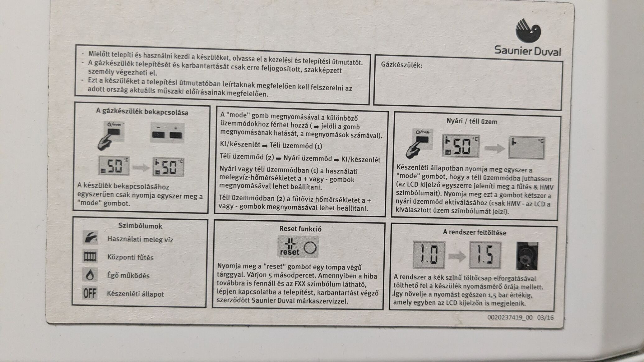 Gázbojlerrel kapcsolatban lenne egy kérdésem. Akad mellettem egy Saunier Duval Semiatek Condens 24 bojler, amin elkezdett villogni a nyomásjelző, miszerint túl alacsony. A rajta lévő címke és az online talált útmutató alapján az alján lévő kék csappal tudnék a víznyomáson növelni, azonban kézzel próbálva meg sem mozdul. Van a másik végén egy fekete csap is, ahhoz egyelőre nem nyúltam. Azt vettem észre, hogy van a tekerő közepén egy csavar, jól gondolom hogy akkor azt előbb ki kéne csavarnom és utána el lehet forgatni a csapot rendesen?