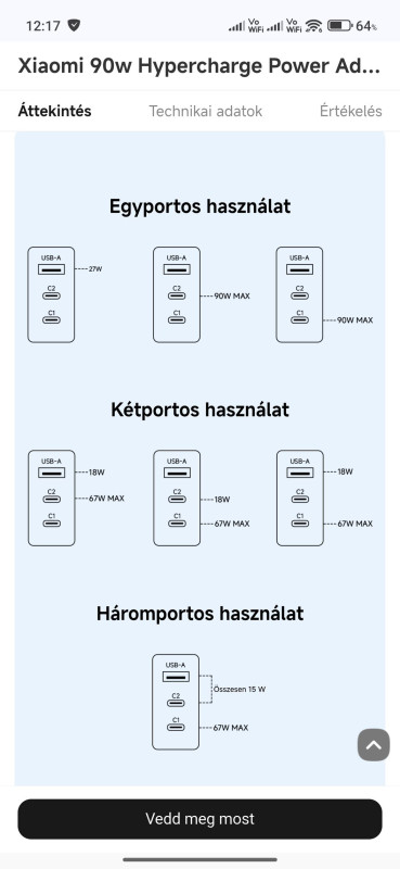 ezek a 3 portos xiaomi gyorstöltők ajánlottak? ha csak egy portról töltöm a telefont akkor biztosan tölti 90w-al? (ugye sok xiaomihoz nem adnak már csak kábelt, akkor viszont egy ilyen gondolom jobban megéri mint egy szimpla töltőfej 1-2 ezerrel olcsóbban...)